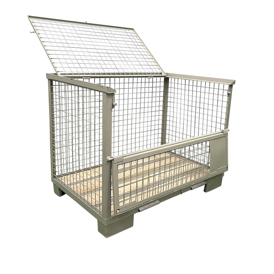 Gitterboxpalette mit verschließbarem Gitterdeckel