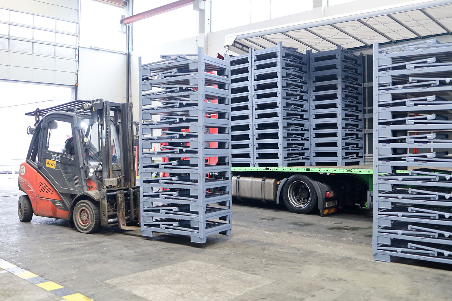 Drei von vier Fahrten können vermieden werden, weil eine optimale Auslastung des Laderaums die Basis der SchneiderBox ist. Das intelligente SchneiderStapelsystem ermöglicht neben der leichten 65-kg Konstruktion, dass sich die SchneiderBoxen im geklappten Zustand ineinander setzen. Somit sind die Boxen 12-fach im Laderraum stapelbar. Mit 384 SchneiderBoxen anstatt 96 EPAL Gitterboxen ermöglichen sie eine ökonomische Laderaumausnutzung.
